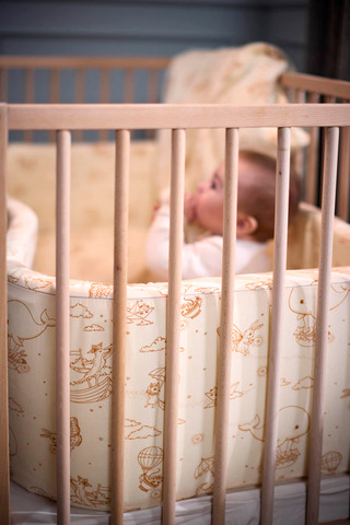 Sengeranden fra Filibabba gør det hyggeligt i barnets seng, den og sikrer samtidig, at barnet ikke står sig mod tremmerne eller sidder fast i disse. Det er kun på den ene side af sengeranden, at der broderet små ispinde og isvafler, så du har mulighed for at skifte mellem de to forskellige sider. Sengeranden måler 30 * 340 cm, og den passer til de fleste senge, da enderne blot kan overlappe, hvis sengens omkreds er kortere end 340 cm. Betrækket er lavet i 100% økologisk bomuld, og der er lynlås i det, så det er nemt at vaske, når der er behov for det.
