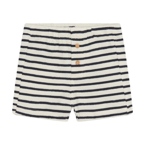 kundeservice@pixizoo.dkShorts m. Striber fra Minymo er et skønt valg til sommergarderoben, hvor komfort og stil går hånd i hånd. Det klassiske stribede mønster i den lyse Vanilla Ice farve giver et friskt og tidløst udtryk, der passer til både hverdag og festlige lejligheder. Shortsene har en blød elastik i taljen, som sikrer en behagelig og fleksibel pasform, så barnet frit kan bevæge sig og lege hele dagen. De to fine træknapper foran tilføjer et charmerende og naturligt touch, der understreger det enkle og nordiske design. Shortsene er lette og luftige, hvilket gør dem perfekte til varme dage, og de kan nemt kombineres med både t-shirts og skjorter for et afslappet eller mere pænt look.