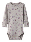 Simone Langærmet Body fra NAME IT i farven Ashes Of Roses er et skønt valg til de mindste. Den bløde ribstruktur sikrer komfort hele dagen, mens det fine blomsterprint giver et sødt og feminint udtryk. Bodyen har lange ærmer, der holder barnet varmt, og de praktiske trykknapper i bunden gør det nemt at skifte ble. Den runde halsudskæring og elastiske kvalitet gør bodyen let at tage af og på, og den sidder behageligt mod huden. Perfekt til både hverdag og festlige lejligheder, hvor komfort og stil går hånd i hånd.