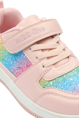 Sneakers Glitter fra Mikk-Line er perfekte til børn, der elsker farver og glimmer! De har en flot Adobe Rose farve med regnbueglitter, som gør dem ekstra sjove. Skoene er lette at tage på med velcro og snørebånd.