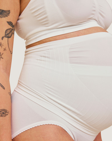 -Blidt: Ekstra elasticitet over maven kombineret med blid men fast støtte under maven og i siderne.
