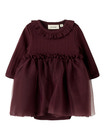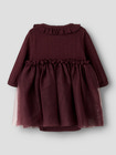 kundeservice@pixizoo.dkSolange Langærmet Tulle Bodykjole fra Lil' Atelier i farven Catawba Grape er den perfekte kombination af komfort og elegance til de mindste. Kjolen har en blød og strækbar overdel med lange ærmer, der sikrer god bevægelsesfrihed og varme. Den fine tulle-nederdel giver et sødt og festligt udtryk, ideelt til både hverdag og særlige lejligheder. Flæsekanten ved halsen og den smukke dybe bærfarve fuldender det feminine look. Med praktiske trykknapper i bunden er det nemt at skifte ble, og bodykjolen sidder godt uden at stramme. En kjole, der både er behagelig og stilfuld til din lille.
