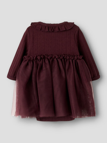 Solange Langærmet Tulle Bodykjole fra Lil' Atelier i farven Catawba Grape er den perfekte kombination af komfort og elegance til de mindste. Kjolen har en blød og strækbar overdel med lange ærmer, der sikrer god bevægelsesfrihed og varme. Den fine tulle-nederdel giver et sødt og festligt udtryk, ideelt til både hverdag og særlige lejligheder. Flæsekanten ved halsen og den smukke dybe bærfarve fuldender det feminine look. Med praktiske trykknapper i bunden er det nemt at skifte ble, og bodykjolen sidder godt uden at stramme. En kjole, der både er behagelig og stilfuld til din lille.