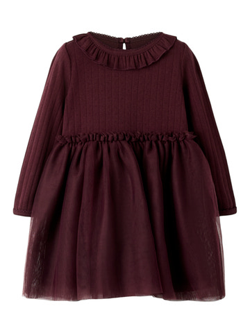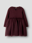 kundeservice@pixizoo.dkSolange Tulle Kjole fra Lil' Atelier er en yndig og stilfuld kjole, der kombinerer komfort og elegance. Overdelen er lavet i en blød, ribbet kvalitet, som føles behagelig mod huden, mens det lette tylskørt giver et eventyrligt udtryk. Kjolen har lange ærmer, en rynket krave og en praktisk knaplukning i nakken, så den er nem at tage af og på. Den dybe bordeaux nuance gør kjolen oplagt til både særlige anledninger og hyggelige hverdage, hvor der gerne må være lidt ekstra glans. En skøn kjole, der hurtigt bliver en favorit i garderoben.