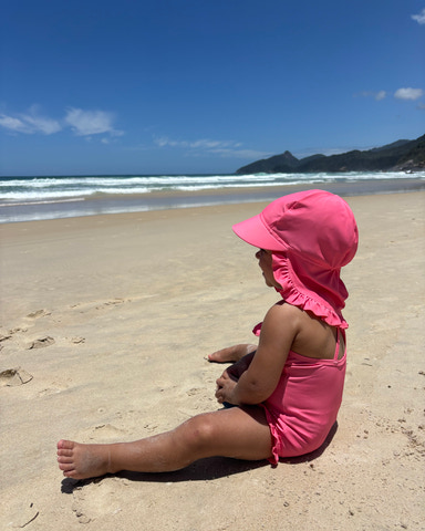 Solhatten Rosy fra Vanilla COPENHAGEN beskytter dit barn mod solens stråler med smart nakkeskygge og søde flæser. Lavet i blødt polyester og elastan, som sikrer god komfort og bevægelsesfrihed. Perfekt til leg i solen!