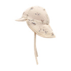 Sommerhatten er syet i en blød og behagelig bomuldsblanding og har en praktisk skygge foran samt en længere skygge bagpå, der giver ekstra solbeskyttelse. På bagsiden sørger elastik for en god og fleksibel pasform, mens bindebånd under hagen hjælper hatten med at blive siddende, selv når barnet er aktivt.