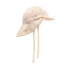 Hatten er fremstillet i en blød bomuldsblanding og designet med en praktisk skygge foran samt en ekstra lang skygge bagtil for optimal beskyttelse mod solen. På bagsiden sikrer en elastisk detalje en behagelig pasform, mens bindebånd under hagen hjælper hatten med at blive siddende – også når det blæser.