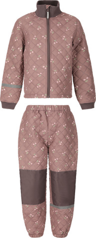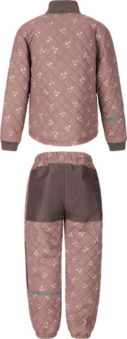 Den quiltede, åndbare jakke med høj krave, hagebeskytter og ribkanter ved ærmerne sørger for en behagelig og varm pasform. De matchende bukser har elastisk linning og elastiske benafslutninger, som giver en fleksibel og komfortabel fornemmelse – perfekt til leg og bevægelse.