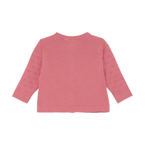 Denne strikkede cardigan fra Minymo er et skønt valg til de små, der fortjener både komfort og stil. Cardiganen er fremstillet i en blød og let strik, som føles behagelig mod huden og er perfekt til både hverdag og festlige lejligheder. Det fine hulmønster giver et elegant udtryk, mens den klassiske rund hals og knaplukning foran gør den nem at tage af og på. Farven Brandied Apricot tilføjer et varmt og moderne touch til garderoben, og cardiganen kan nemt kombineres med både bukser, kjoler og leggings. Ideel som et ekstra lag på kølige dage.
