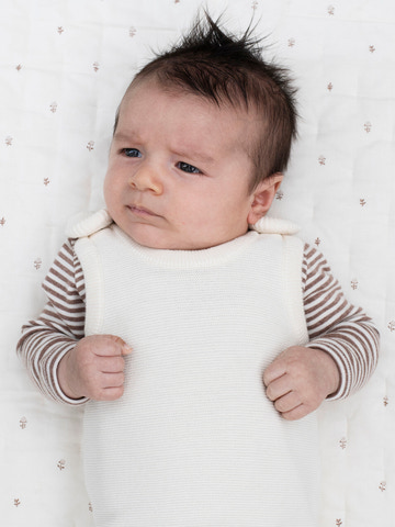 kundeservice@pixizoo.dkDen strikkede romper fra Serendipity Organics i den smukke cremefarve er et ideelt valg til både hverdag og festlige lejligheder. Romperen er fremstillet i blød og økologisk bomuld, som føles behagelig mod barnets hud og sikrer god åndbarhed. Det klassiske og tidløse design gør den nem at kombinere med andre styles, og den fine struktur i strikken giver et elegant udtryk. Trykknapperne ved skuldrene og langs benene gør det nemt at tage romperen af og på, samt at skifte ble uden besvær. Den er designet med fokus på både funktionalitet og komfort, så barnet kan bevæge sig frit og lege uforstyrret.