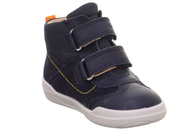 Lækre Superfit støvler i flot navy ruskind og læder, med navy tekstil omkring øverste del af skaftet. Perfekt til små eventyr.