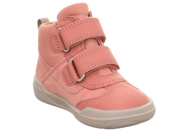 Superfit støvlerne er en halvhøj model, som går op over anklerne. De lukkes med velcro, og de er forede med skind og blødt tekstil. Støvlerne har udtagelige indersåler, og ydersålerne er lysegrå og lavet af et letvægtigt og fleksibel materiale.