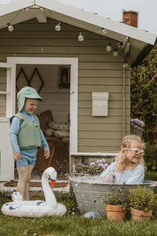 Svømmevest med strop fra Vanilla COPENHAGEN i flot grøn farve. Lavet af blødt neopren og polyester, som giver god komfort og bevægelsesfrihed. Vesten har praktisk strop mellem benene, der sikrer ekstra sikkerhed. Perfekt til børn, der skal lære at svømme og lege trygt i vandet.