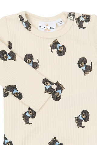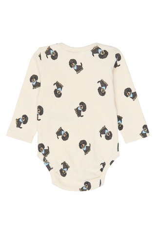 Sylvan Langærmet Rib Body fra The New Siblings er en blød og behagelig body med sødt hundeprint. Perfekt til små børn, da den er nem at tage af og på. Ribkvaliteten giver ekstra komfort og bevægelsesfrihed.