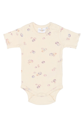 Tamma kortærmet rib body fra The New Siblings er perfekt til små børn. Lavet af blød og strækbar rib i 95% bomuld og 5% elastan, som sikrer komfort og bevægelsesfrihed. Sød Gardenia AOP print gør den ekstra fin.