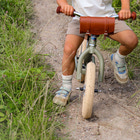 Sød og nostalgisk taske i retrodesign, lavet i kunstlæder. Den har praktiske læderstropper, der gør, at den kan sættes fast på cykelstyret. Den passer perfekt til løbecyklerne fra Trybike. 18x9,5x5,5 cm.