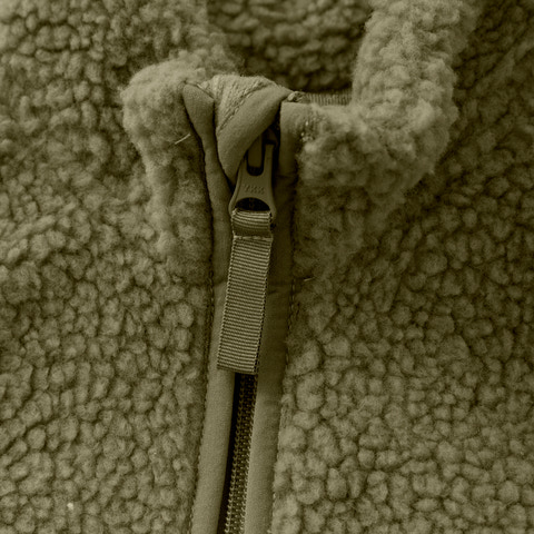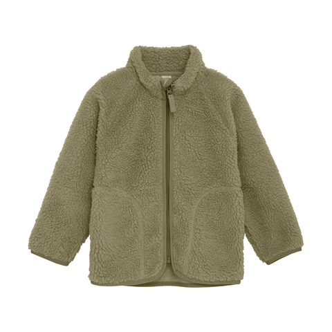 Ensfarvet teddy jakke. Jakken har lommer og lukkes med en kvalitets lynlås fortil. Jakken er blød og varm.