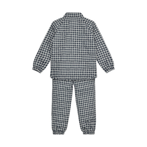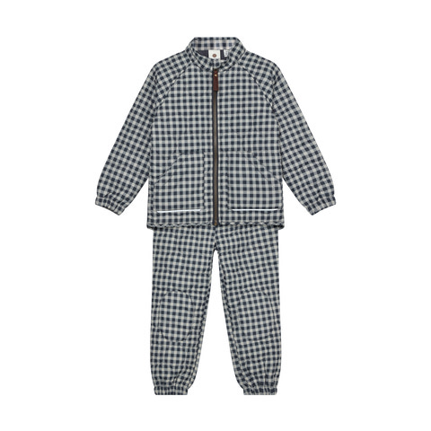 Termosæt m. Print fra En Fant er det perfekte valg til de kølige dage, hvor dit barn skal holdes varmt og komfortabelt. Sættet består af en smart termojakke og matchende termobukser, begge med et flot ternet print i den stilfulde farve Ebony. Jakken har lynlås foran, som gør det nemt for barnet selv at tage den af og på, og de to lommer giver plads til små skatte eller varme hænder. Bukserne har elastik i taljen og ved anklerne, hvilket sikrer en god pasform og holder kulden ude. Termosættet er ideelt som overgangstøj, da det både kan bruges alene eller som ekstra lag under regntøj eller flyverdragt. Materialet er let og fleksibelt, så barnet kan bevæge sig frit, uanset om det leger ude eller inde. Sættet er slidstærkt og nemt at vedligeholde, hvilket gør det til et praktisk valg for aktive børn og travle forældre.