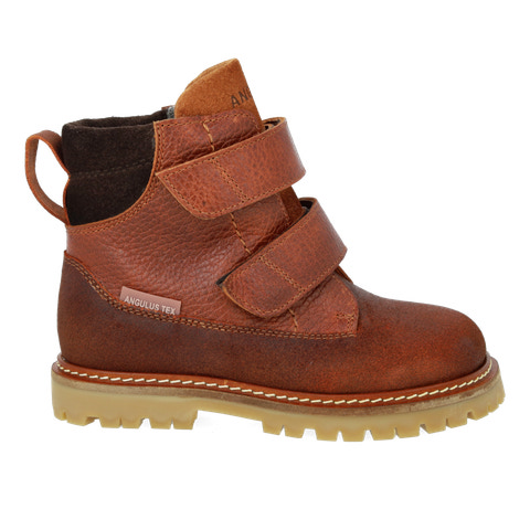 Angulus TEX-støvle i cognac/dark brown er skabt til aktive børn, der har brug for fodtøj, der kan holde til leg og eventyr i al slags vejr. Støvlen har en ekstra slidstærk overflade og en kraftig, profileret gummisål, som giver et godt fodfæste på både våde og glatte underlag. Den praktiske velcrolukning gør det nemt for barnet selv at tage støvlerne af og på, og sikrer samtidig en god pasform. TEX-membranen holder fødderne tørre, mens den bløde indersål sørger for komfort hele dagen. Støvlen er designet i smukke naturfarver, der passer til både hverdag og udendørs aktiviteter.