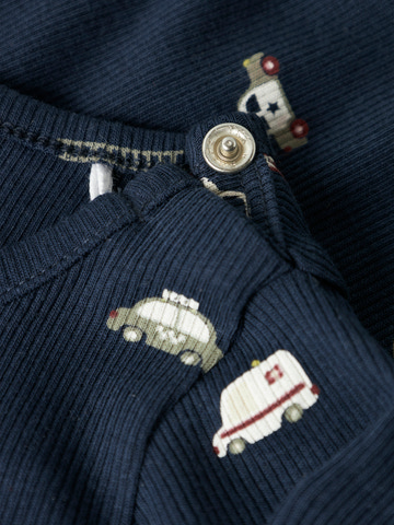 kundeservice@pixizoo.dkThue Heldragt fra NAME IT er det perfekte valg til de mindste, der skal have det både rart og sejt på samme tid. Dragten er lavet i en blød og strækbar kvalitet, der sikrer god bevægelsesfrihed og komfort hele dagen. Det fine print med små biler på en navy blå baggrund gør heldragten ekstra charmerende, og de praktiske trykknapper mellem benene gør det let at skifte ble. Med lange ærmer og rund hals er dragten ideel til både leg og lur, og den kan bruges alene eller som et ekstra lag under tøjet på kølige dage. NAME IT er kendt for deres børnetøj i høj kvalitet, og denne heldragt er ingen undtagelse.