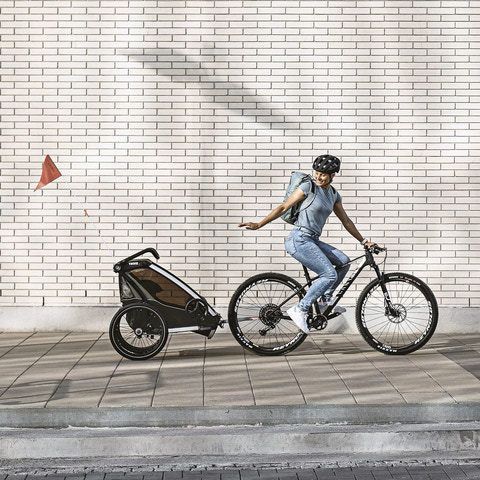 Med det medfølgende cykel- og gåsæt kan du hurtigt skifte mellem aktiviteter, og bagtil er der god plads til opbevaring af tasker og udstyr. Alt i alt en robust, alsidig og brugervenlig løsning, der gør det enkelt at tage børnene med – hvad enten turen går på cykel, til fods eller i løb.