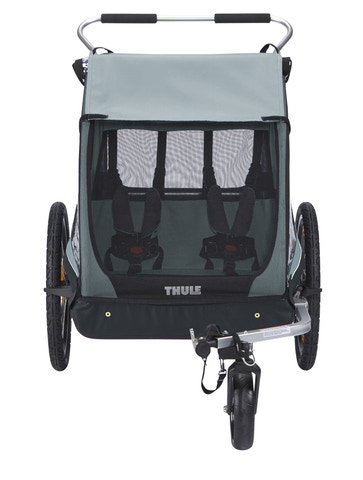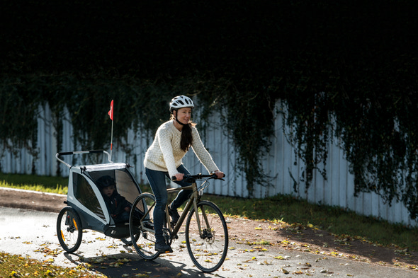 Thule Coaster XT er en holdbar cykeltrailer, som garanterer en sikker og komfortabel tur. Med et justerbart styr og ekstra opbevaringsrum, enkle, kompakt sammen folding gør den let at transportere. Thule Coaster XT bruger det patenterede ezHitch til let og hurtig sammenkobling med cyklen og gør det fantastisk til både travl pendling og afslappende fritid. Leveres med både et cykeltrailersæt og et klapvognssæt, så man nemt kan lave den om til en klapvogn, når du har nået din destination, eller bare forsætte en dejlig cykeltur. Stort bagagerum giver dig mulighed for at transportere legetøj, snacks eller daglige fornødenheder. Rummelige sæder passer komfortabelt til to børn til sjove og sikre familie eventyr. Ergonomisk, justerbart styr sikrer en perfekt pasform til enhver forælder, når Thule Coaster XT anvendes som klapvogn.