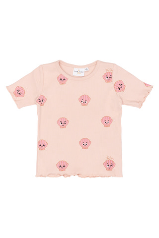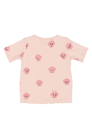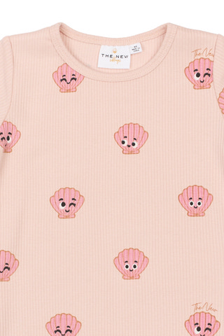 Tinker Rib T-Shirt fra The New Siblings er perfekt til børn! Lavet af blød og strækbar rib i 95% bomuld og 5% elastan. Sød Peach Whip farve med sjove muslingemotiver.