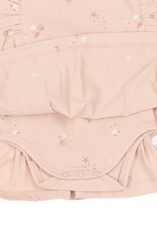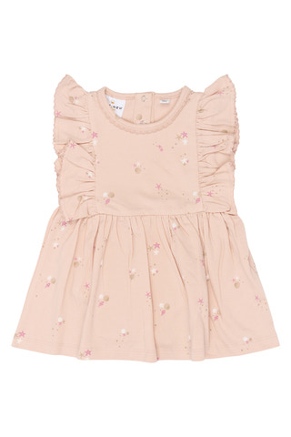 kundeservice@pixizoo.dkTova bodykjole fra The New Siblings er perfekt til små børn. Den er lavet af blød bomuld og elastan, så den er behagelig og fleksibel. Kjolen har fine flæser og et sødt Peach Whip print.