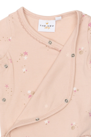 kundeservice@pixizoo.dkTova langærmet wrap body fra The New Siblings er perfekt til små børn. Den er lavet af blød og strækbar bomuld (95% bomuld, 5% elastane), som giver god komfort. Bodyen har et sødt print og praktisk wrap-lukning, der gør det nemt at tage den af og på.