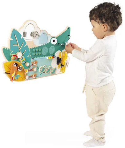 Tropic – Crocodile Activity Board er et fantasifuldt og udviklende aktivitetsbræt, designet til at vække nysgerrigheden hos de mindste. Det er fremstillet i certificeret træ og fyldt med spændende detaljer, der inviterer barnet til at lege, udforske og lære på samme tid.