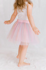 Et blødt tylskørt i de fineste pastelstriber med et glimt af glitter. Det svæver let og leger med farverne som en lille regnbue, der gør dans og fantasi endnu mere magisk. Perfekt til både leg og fest.