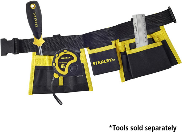 Dette seje værktøjsbælte er perfekt til små håndværkere, der vil have hænderne fri og værktøjet lige ved hånden – præcis som de voksne! Med et design, der ligner et ægte Stanley værktøjsbælte, får børn en autentisk oplevelse, der gør rollelegen endnu mere spændende.